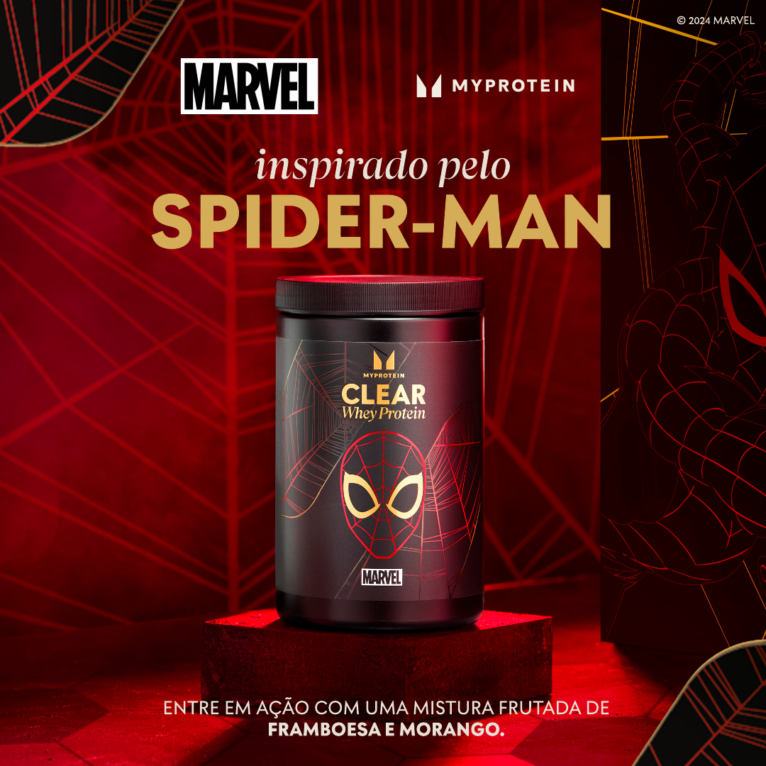 Escolhe entre as proteínas Clear Whey Protein do Spider-Man, do Hulk, do Black Panther ou da Capitan MARVEL para ajudar-te nos teus objectivos. Cada batido fornece 20g de proteína e menos de 90kcal.