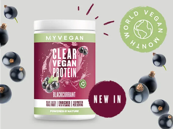NovidadeA nossa Clear Vegan Protein agora com um novo sabor, a suculenta groselha preta! -