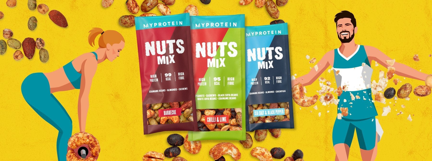 O Nuts Mix vem em três sabores - Chili & Lima, Barbecue e Sal Marinho & Pimenta Preta – e é perfeito para estimular as papilas gustativas, fazendo subir ao mesmo tempo os teus níveis de energia no fim de tarde.