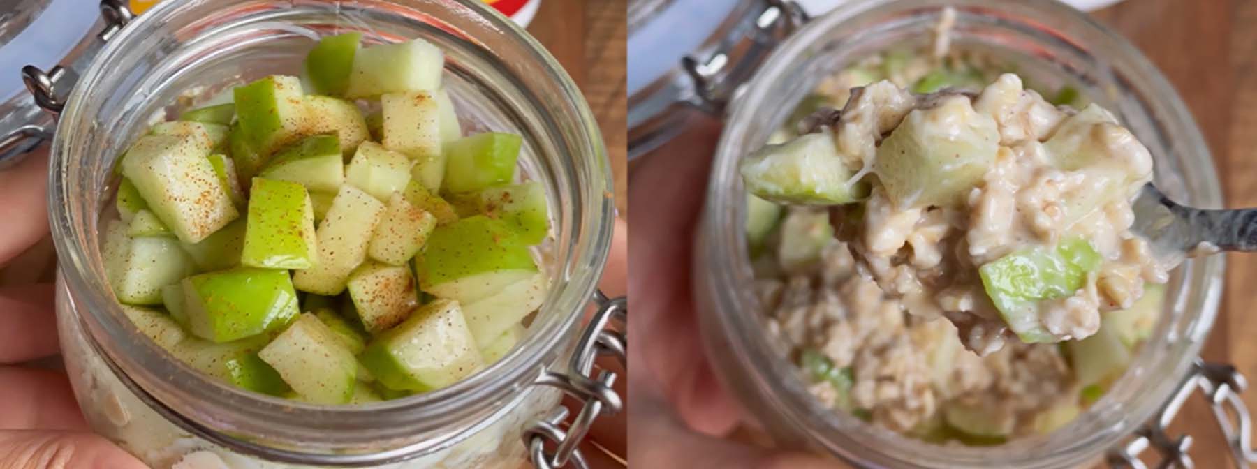 Esta receita muito simples de aveia "adormecida", sugestão de @kirstyfletcher_ permite-nos desfrutar do sabor da maçã caramelizada com um pequeno-almoço nutritivo, mas sem todo o açúcar. Começa a manhã com uma boa dose de 30g de proteína: não há forma melhor de dar combustível ao corpo para o resto do dia. Simplesmente prepara tudo na noite anterior e encontra o pequeno-almoço à tua espera quando te levantas – perfeito para quem tem pouco tempo de manhã. A nossa sugestão é fazer uma boa quantidade, armazenar no frigorífico, e a questão do pequeno-almoço fica resolvida para o resto da semana.