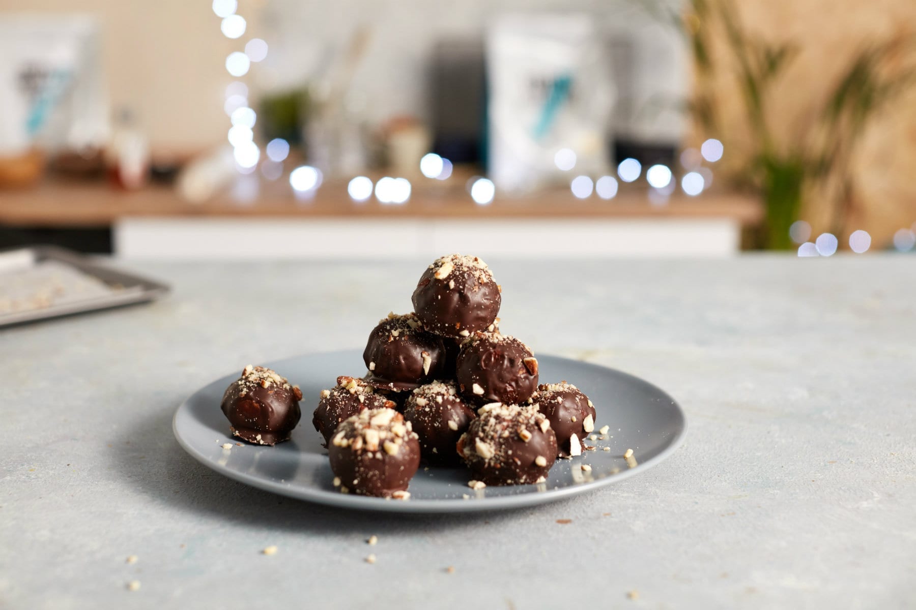 Adoçadas com mel e com uma cremosa dose de manteiga de amêndoa: não há necessidade de cedermos à tentação das trufas cheias de calorias este ano. Estas pequenas guloseimas estão também cheias de proteína, proveniente da nossa Impact Whey Protein, assim como Chocolate Proteico, que contém 62% menos açúcar que um chocolate médio convencional. Por isso, poderás desfrutar de toda a sua delícia viscosa com apenas uma fração da culpa.