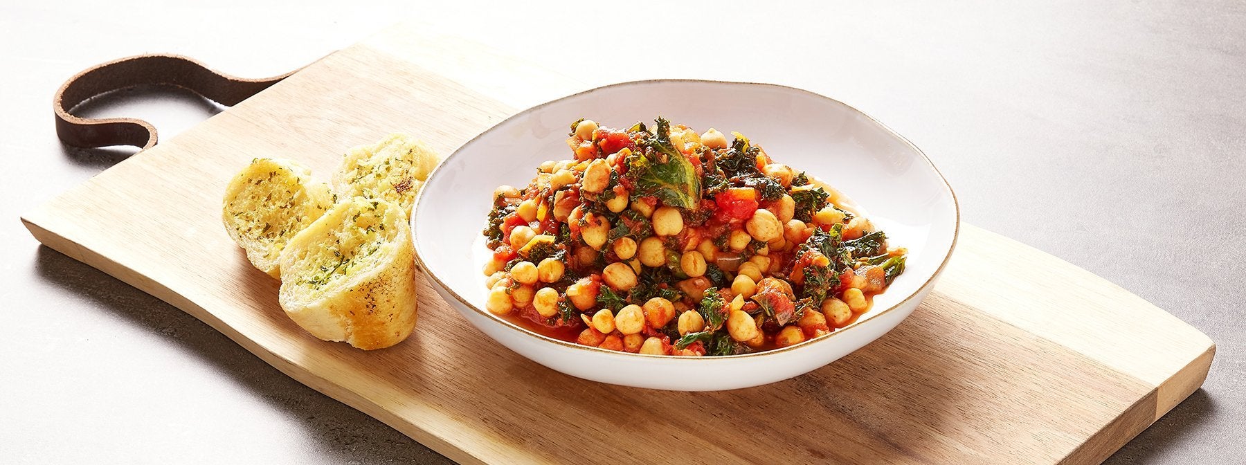 Quentinho e cheio de sabor, este reconfortante guisado de grão de bico fica pronto num abrir e fechar de olhos. É um prato versátil que funciona bem por só acompanhado de pão, ou, se quiseres algo mais substancial, servido com arroz ou quinoa como acompanhamento.