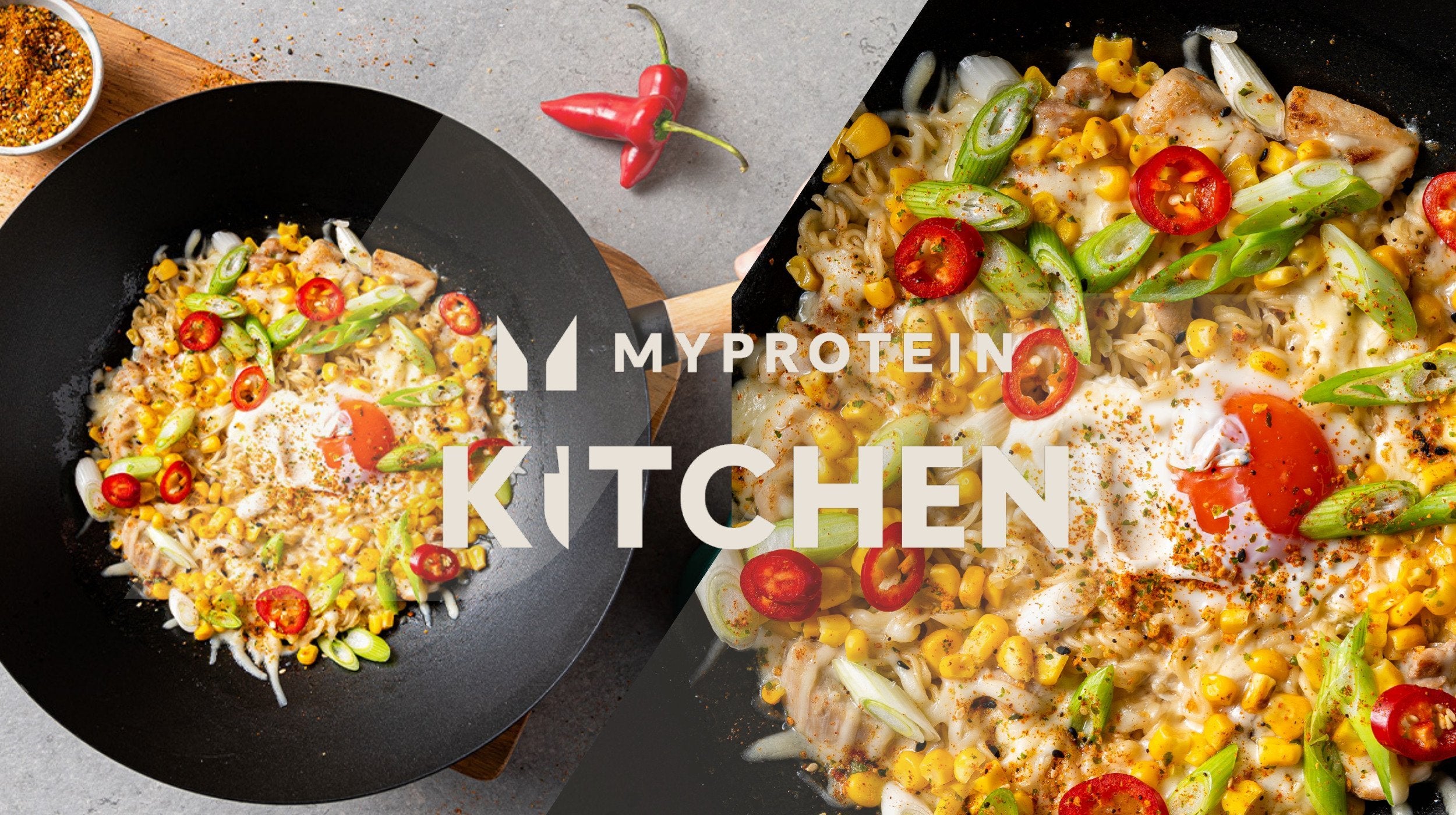 - Parte o ovo no centro dos noodles e polvilha com o queijo, o cebolinho, o milho doce e as rodelas de pimento.