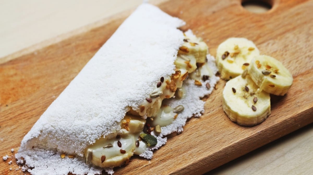 Bater todos os ingredientes e levar à crepeira. Dobrar em quatro partes e rechear com Impact Whey de chocolate.
