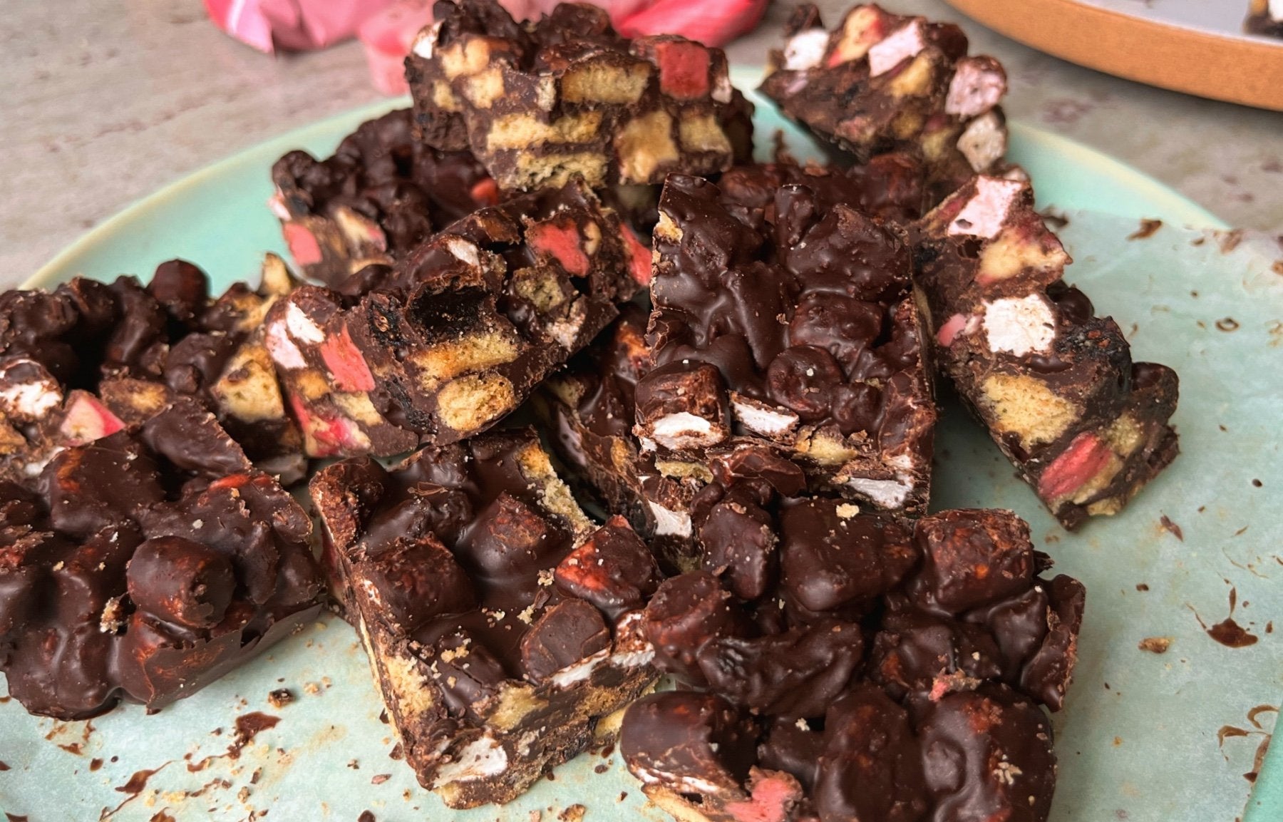 Niall Kirkland está de volta com mais uma receita convidativa, perfeita para satisfazer as tentações sem fazer descarrilar por completo o teu progresso nos treinos. Ele substituiu o chocolate de leite e a manteiga que encontraríamos normalmente num doce “rocky road” e usou em vez disso chocolate preto e um pouco de óleo de coco, para ajudar a manter esses macronutrientes em ordem.