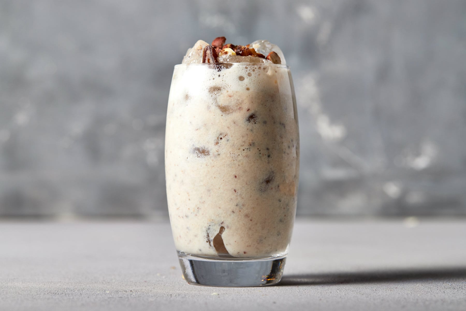 - Verte para um copo ou shaker e usa algumas tâmaras e frutos secos adicionais como cobertura opcional.