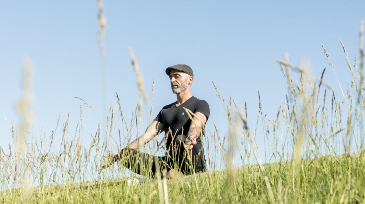 1. Senta-te de pernas cruzadas com a coluna vertical (mantendo a curvatura lombar) ou deita-te de costas com os olhos fechados, relaxando o rosto e o corpo